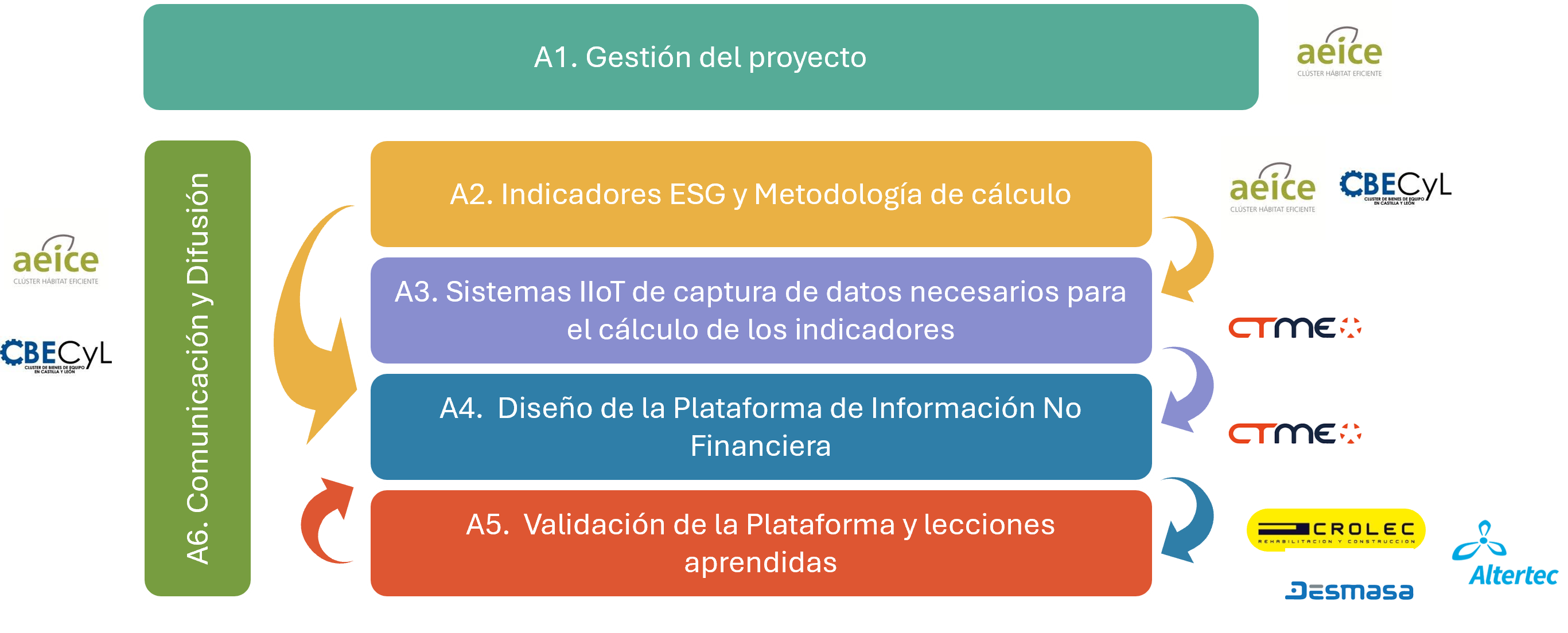 El proyecto se ha dividido en 4 tareas técnicas, junto con una fase de comunicación y difusión de resultados y una de gestión y coordinación del proyecto.
