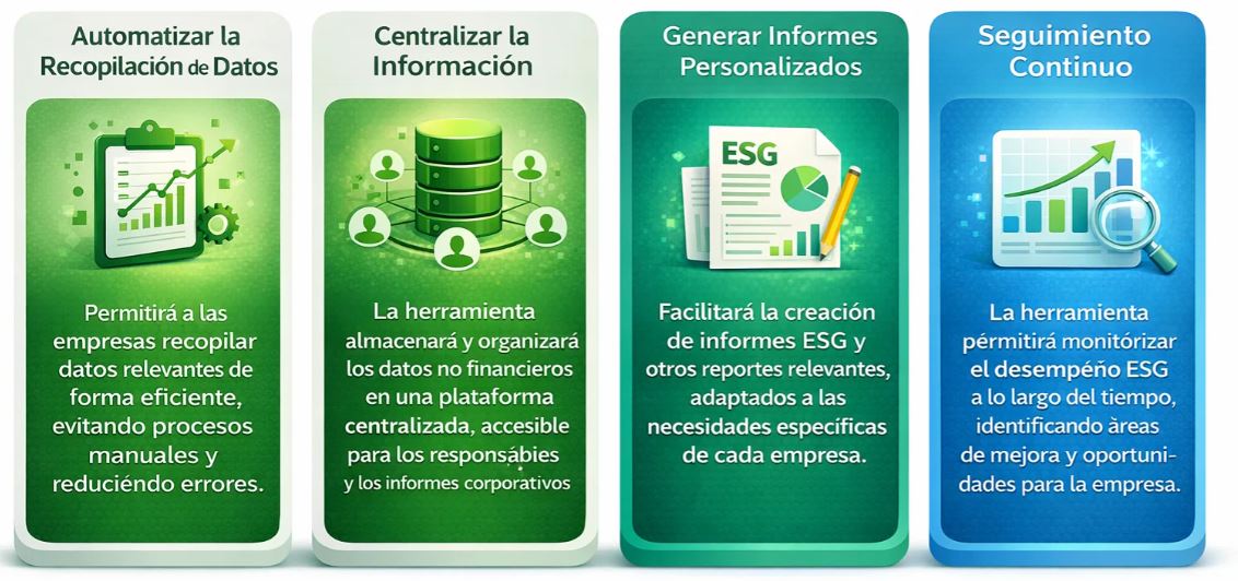 Esta herramienta busca facilitar la captura y análisis de información no financiera, como indicadores ESG contribuyendo así a una toma de decisiones más informada, y al cumplimiento de las demandas de información de los clientes, de la sociedad y del resto de los agentes interesados.![]()